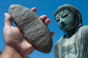 او در همین رابطه توضیح داد: در سواحل «کاماکورا» چیدمانهای محیطی انجام دادم و در این محل مهرهای کوچکی را بر روی جدارههای «گای» چاپ کردم. این مهرها متضمن خط نوشتههای ژاپنی هستند که موضوع صلح و آلودگی هستهای را مورد توجه دارند.
